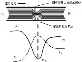 圖1 液體流經調節閥時壓力和流速間的關系