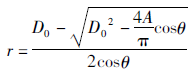 確定閥門流量系數CV值后按式(3)計算出A0,然后根據式(4)針對閥瓣某一閥瓣開度h%時計算出調節閥的閥瓣型面所形成的等效節流流路的面積A。按照圖1所示閥座密封點處畫出一條射線段使其與水平夾角為θ,長度為r。假設此點剛好為此閥瓣開度h%時閥瓣型面上的點,即此射線段所形成的圓臺側面積與A值一樣,即有