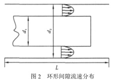 在實際流動過程中 , 閥門內部流道的流動狀態是三維的 , 由于控制裝置采用內外腔套層的結構形式 , 其內部的泄流間隙很小 , 可近似認為其流動狀態為層流 ( 圖2)。則由不可壓縮流體本構方程—廣義牛頓內摩擦定律和納維斯 - 斯托克斯方程。可以得到環形間隙中流體的流量 Q 為