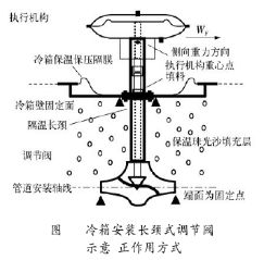 c)從調(diào)節(jié)閥的結(jié)構(gòu)形式的角度分析:使用在不同溫度場合的調(diào)節(jié)閥,大都配制的是帶有散熱器的或是帶有長頸溫度差隔離(深冷的距離尺寸更長,在安裝上這些調(diào)節(jié)閥一般都有兩個支撐點,一個在管道或設(shè)備上,另一個在保冷箱壁上)的產(chǎn)品,它們比普通調(diào)節(jié)閥至少多了一段散熱或隔離距離,閥桿填料所處的位置不是直接的工藝溫度,溫度條件能向環(huán)境溫度方向改善一點,填料不至于過早老化,使用周期延長。其共同特點是閥體連接執(zhí)行機構(gòu)的引出端距離很長,非垂直安裝力臂很長,執(zhí)行機構(gòu)重力產(chǎn)生的力矩很大。因此,這類調(diào)節(jié)閥垂直安裝基本無問題,但側(cè)面、水平安裝大都出現(xiàn)過泄露、內(nèi)件損壞、調(diào)節(jié)動作不靈敏等情況,此類問題現(xiàn)場不采取支撐措施很難解決,檢修中填料壓得不緊很容易出現(xiàn)泄漏故障,壓得過緊則調(diào)節(jié)閥動作不靈敏,甚至?xí)霈F(xiàn)反推力導(dǎo)致不動作的現(xiàn)象,每次加、換填料工作,就顯得難度很大,不容易掌握。