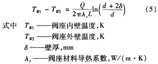 在實際工程應用中,可將該超高溫閥座導熱體近似認為是圓筒壁,由傅里葉定律求得閥座壁面溫差。